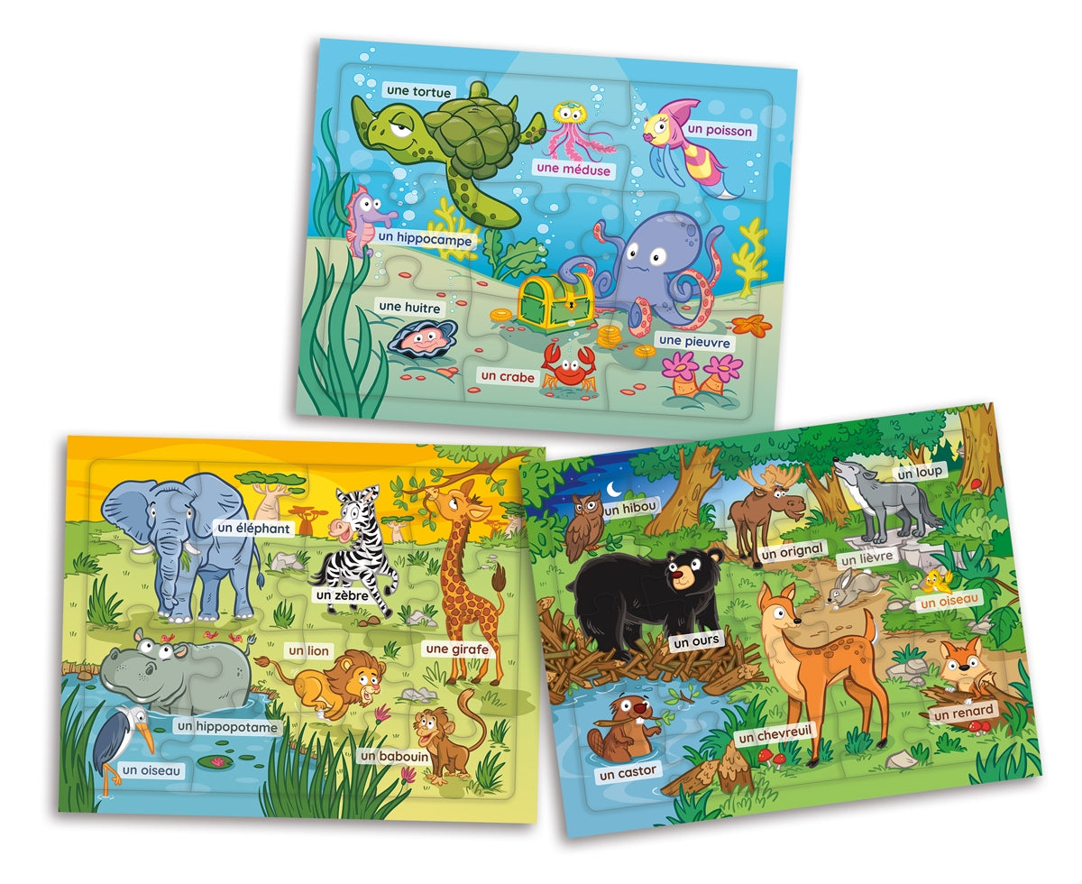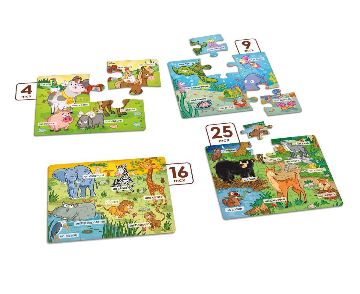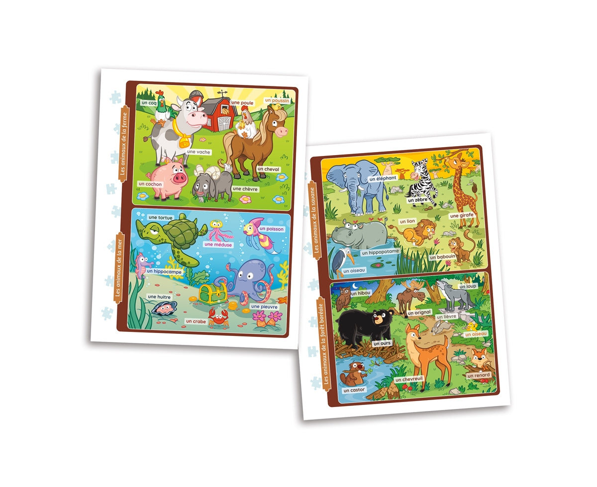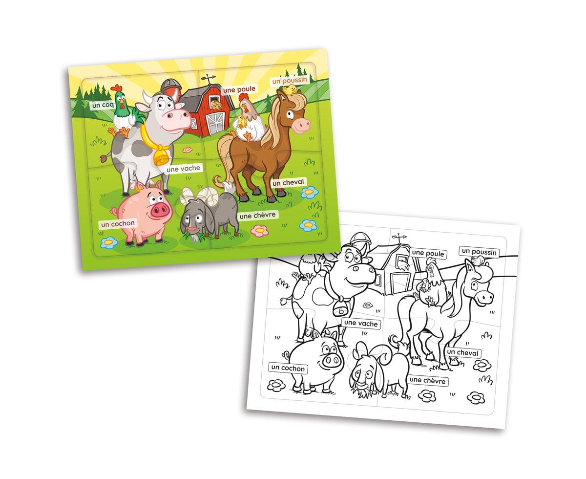 Mes premiers casse-têtes à colorier : les animaux comprend quatre casse-têtes gradués pour les enfants de 2 à 6 ans autour du thème des animaux. Chaque casse-tête est recto verso: d’un côté se trouve une image en couleur et de l’autre, la même image à colorier par l’enfant. Les casse-têtes proposés comportent chacun un nombre de pièces différent. L’enfant peut ainsi faire le casse-tête qui correspond le mieux à son âge ou à son niveau d’habileté au fur et à mesure qu’il grandit.