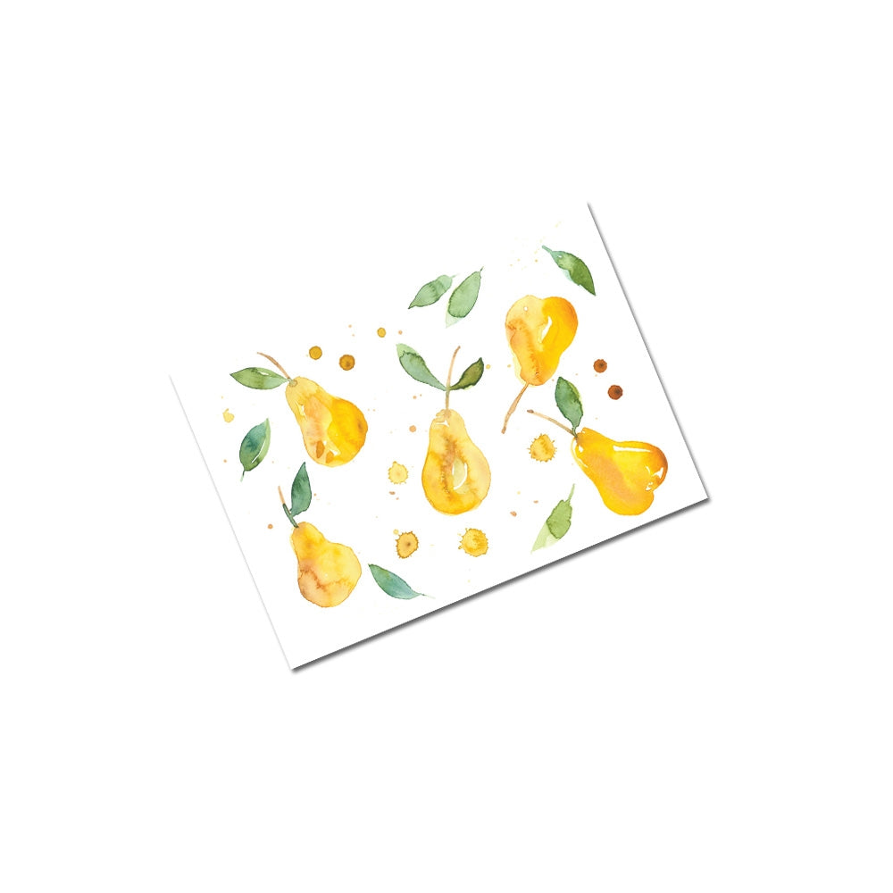 Mini carte de souhaits avec un dessin de poires sur le dessus.