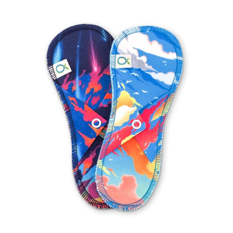 Cette serviette hygiénique est le plus léger modèle de serviette d'Öko Créations. Elle ne contient pas de film imperméable respirant intégré. Elle offre une protection légère pour de fines pertes pendant ou entre les règles ou pour une protection de sécurité supplémentaire lors de port de tampon. Faite de 2 épaisseurs de chanvre absorbant, elle est si mince et discrète que sa présence se fait à peine sentir. Tout comme les serviettes jetables, les serviettes hygiéniques lavables Öko créations ont des ailes. Celles-ci font tenir la serviette bien en place grâce à un bouton-pression s’attachant sous le sous-vêtement. Les mini protège-dessous Öko créations se vendent en paquet de 2. Ils ont des tissus colorés sur les ailes qui les rendent jolis et attrayants! *Les motifs peuvent différer légèrement de l'image*