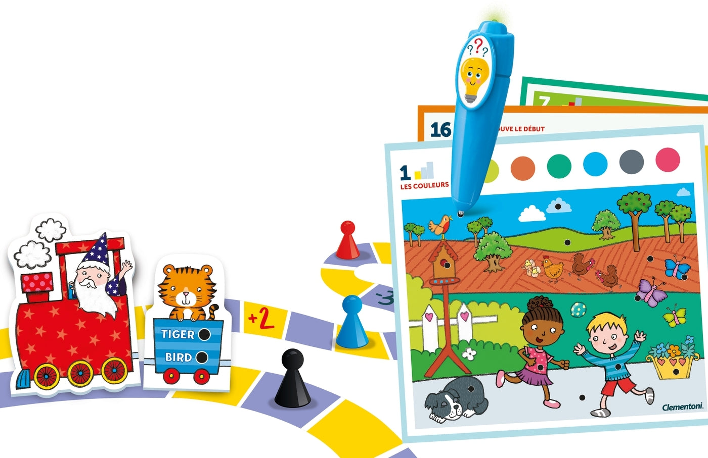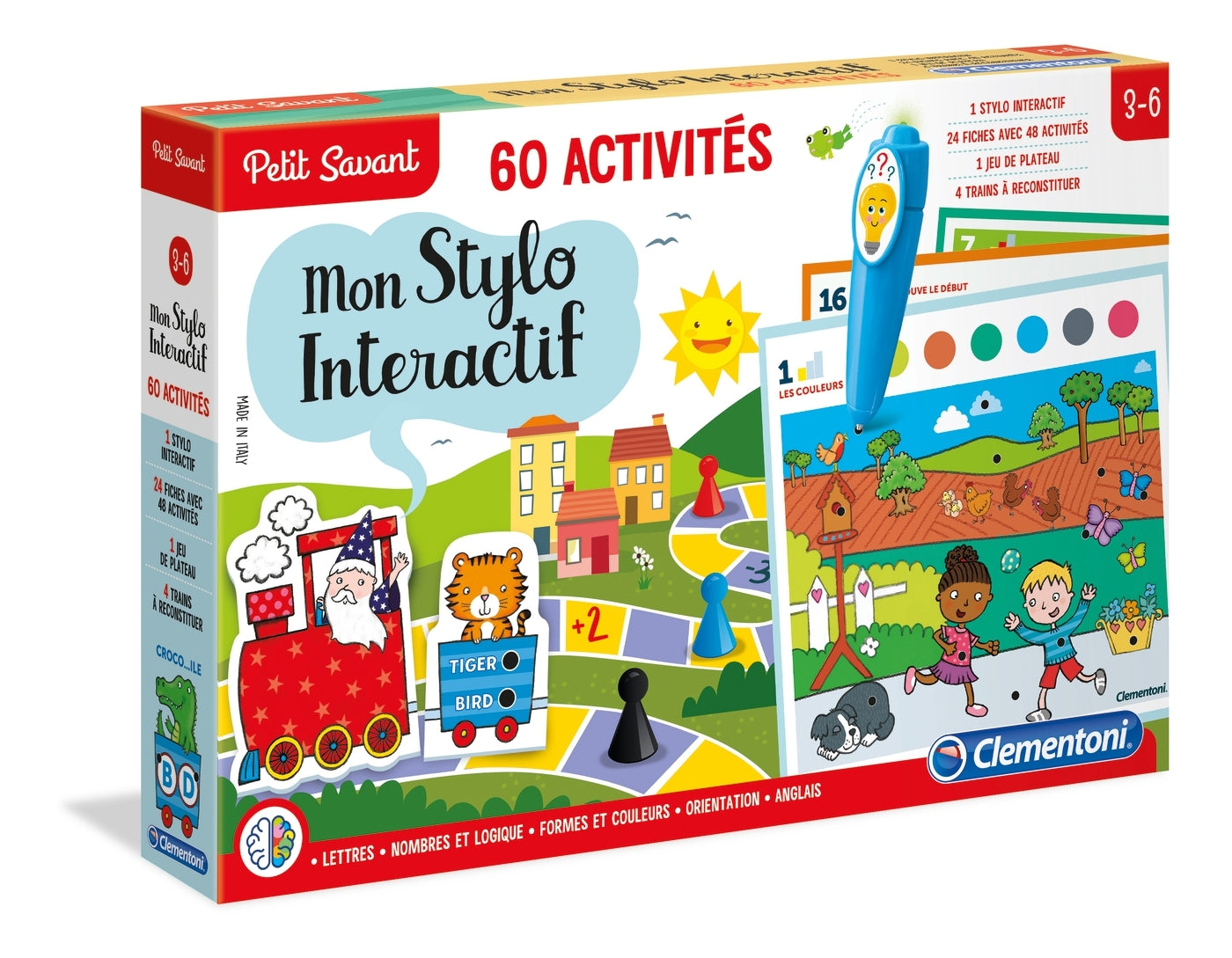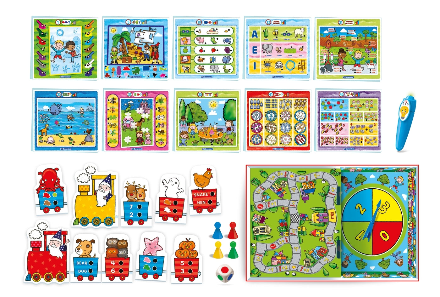 - Contient: 24 fiches recto-verso avec 60 activités, 1 stylo électronique, 1 jeu de plateau, 4 trains à reconstituer et plus de 2000 quiz