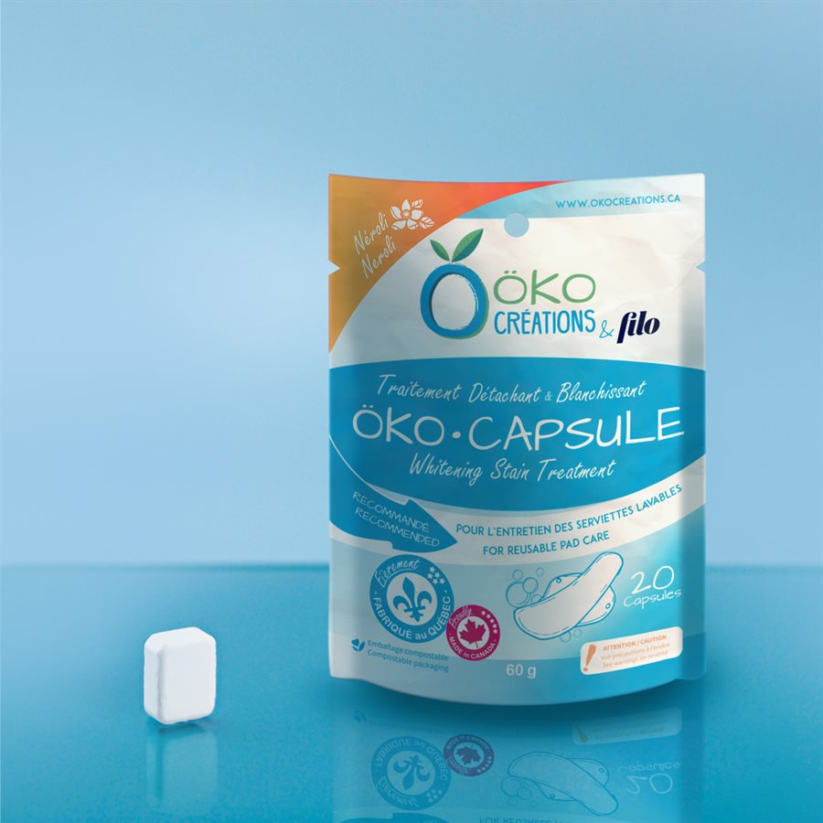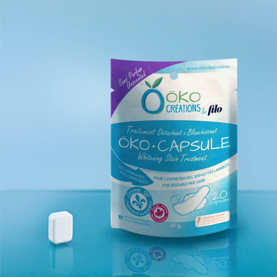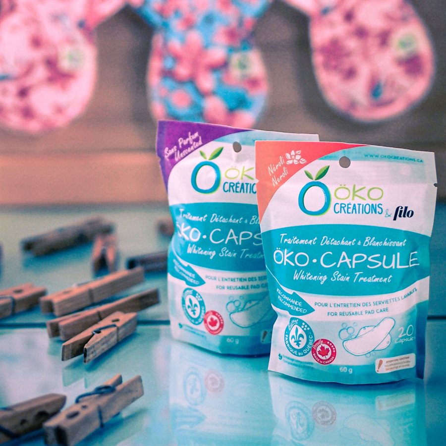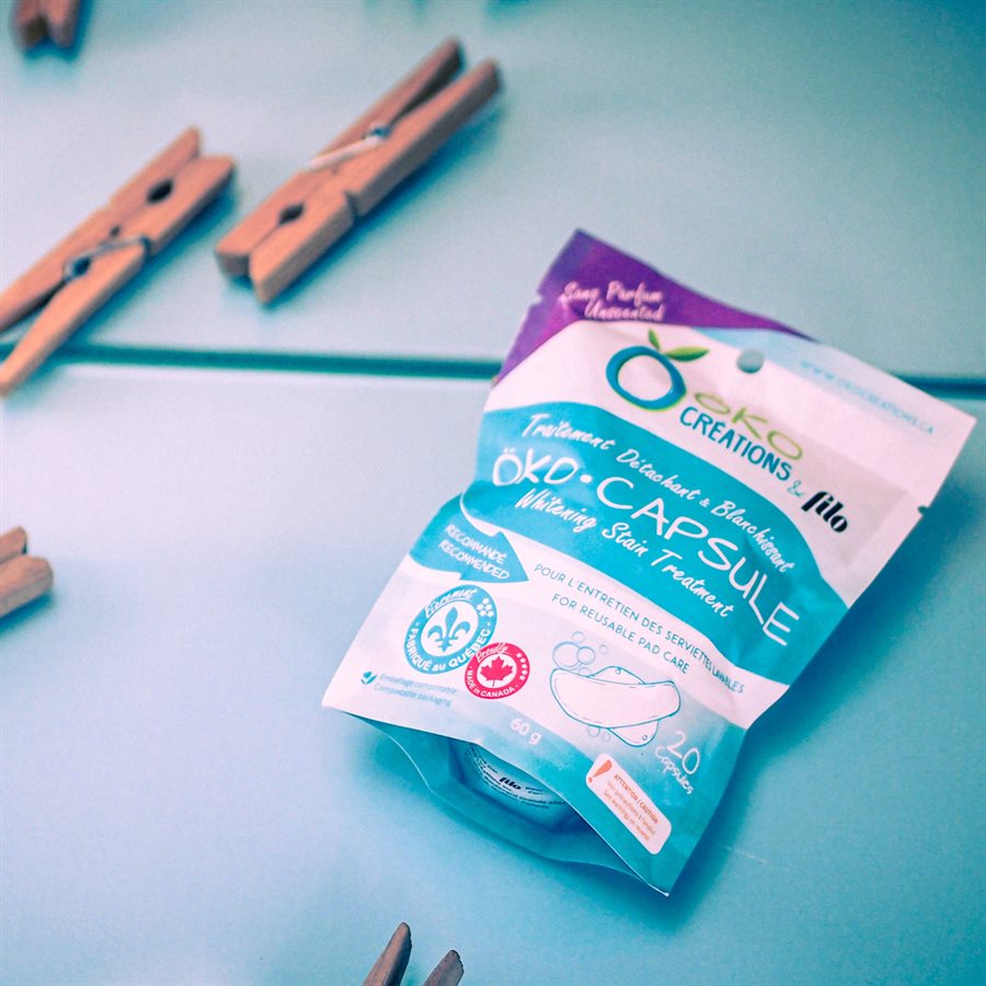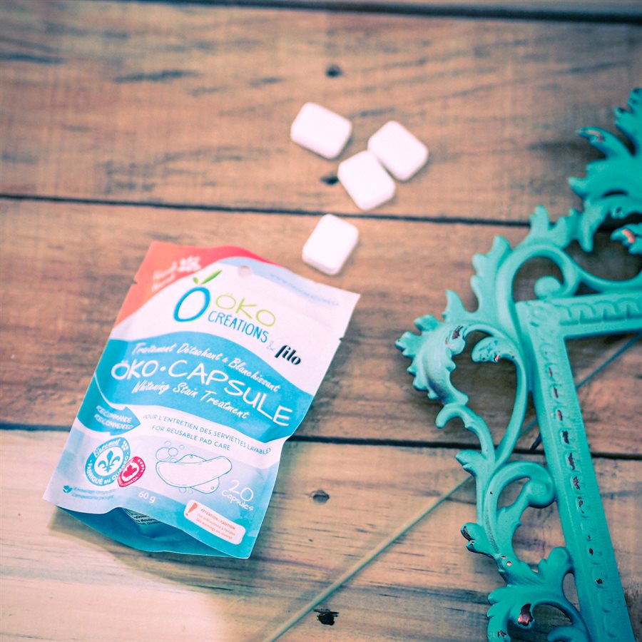 Rincer ou tremper les serviettes à l’eau froide pour enlever le surplus de sang. Remplir un seau avec 1 litre d’eau tiède et y faire dissoudre 2 capsules. Ajouter ensuite les serviettes réutilisables. Faire tremper celles-ci de 3 à 12 heures. Laver les serviettes selon la méthode suggérée par le fabricant.