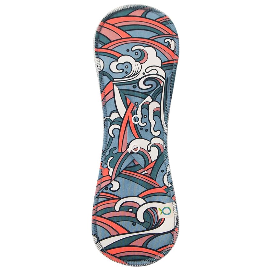 Le tissu en contact avec la peau est fait de coton biologique spécialement tricoté pour absorber rapidement les liquides. Il est disponible en version naturelle (idéale si tu es sensible) ou teinte (parfait pour camoufler les taches). Le centre est fait de chanvre absorbant et naturellement antibactérien.