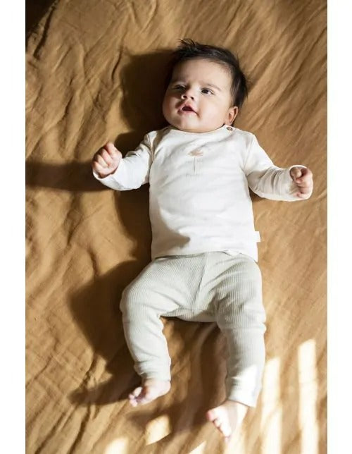 Pantalon doux et stretch de la collection unisexe de Noppies Baby. Le pantalon Mabletone a une taille élastiquée et un cordon de serrage pratique qui ne ressort pas lorsque vous le nouez. Pratique !