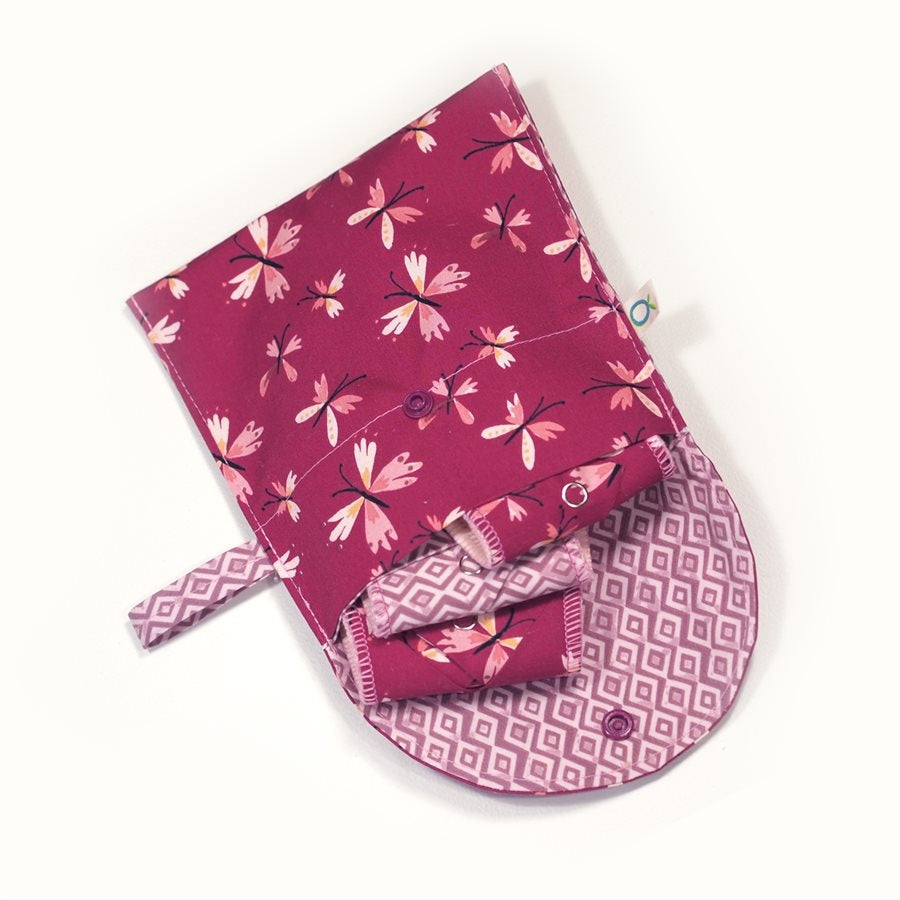 Cette pochette de transport double Öko créations est conçue pour le transport d’articles mouillés ou souillés lorsque vous n’êtes pas à la maison. Que ce soit pour une serviettes hygiénique que vous devez changer, une compresse d’allaitement saturée, un mouchoir, lingette ou débarbouillette souillée, la pochette vous assure de transporter le tout de façon hygiénique jusqu’à votre retour à la maison grâce à son tissu intérieur imperméable et respirant. Les 2 sections de cette pochette permettent de séparer les items propres de ceux souillés. La pochette se referme à l’aide d’un bouton-pression.