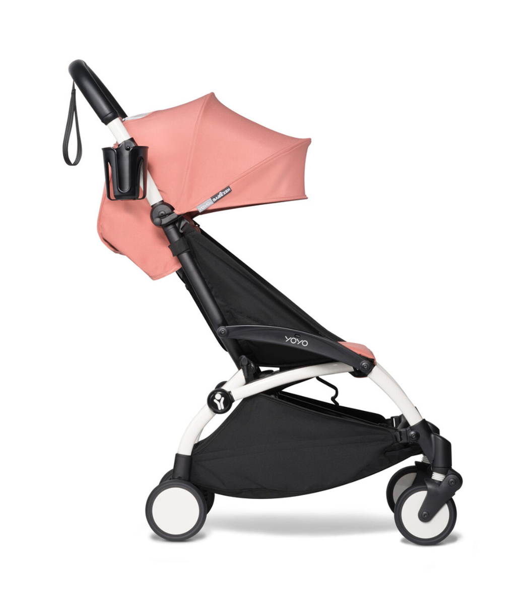 Le porte-gobelet a été spécialement conçu pour la YOYO. Très stable, il dispose d'un crochet spécialement conçu pour se fixer à 6 points différents du châssis de la poussette. Gardez vos boissons à portée de main en installant un porte-gobelet pour vous et un pour votre bébé.