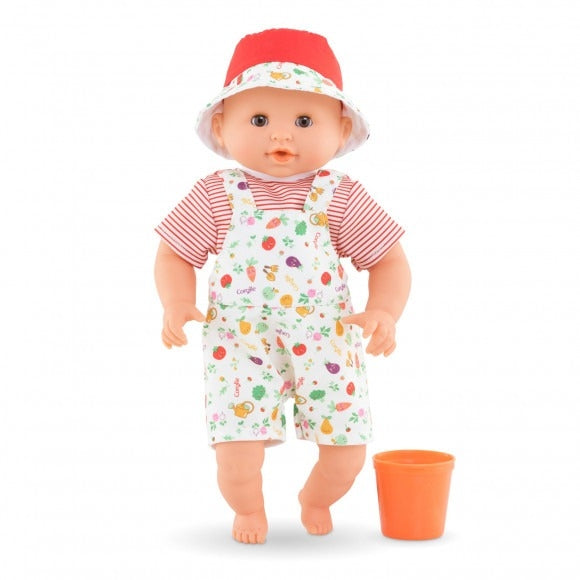 La poupée Calypso, porte un mignon petit chapeau et une salopette courte, imprimée de jolis motifs thématique de jardinerie. De plus, la poupée est accompagnée de son petit pot de fleurs troué pour plus de plaisir dans l’eau.