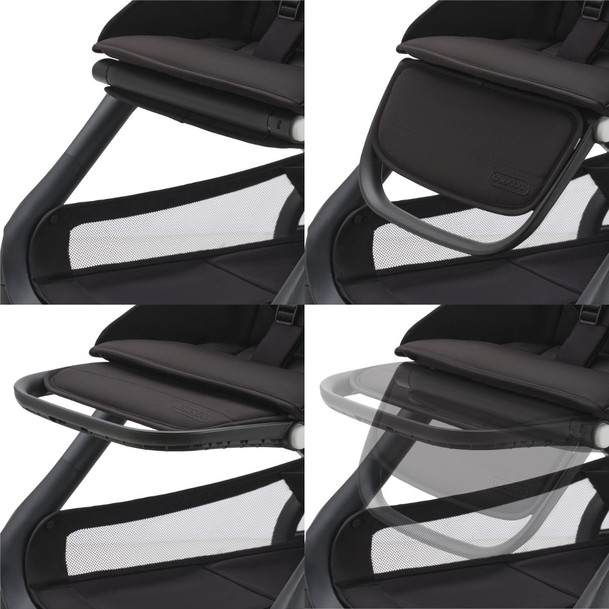 Le très grand panier du dessous peut contenir jusqu'à 22 lbs (10 kg) d'essentiels. La pochette arrière peut être retiré et installée à l'avant, à l'arrière, sur la poignée - là où vous en avez le plus besoin.