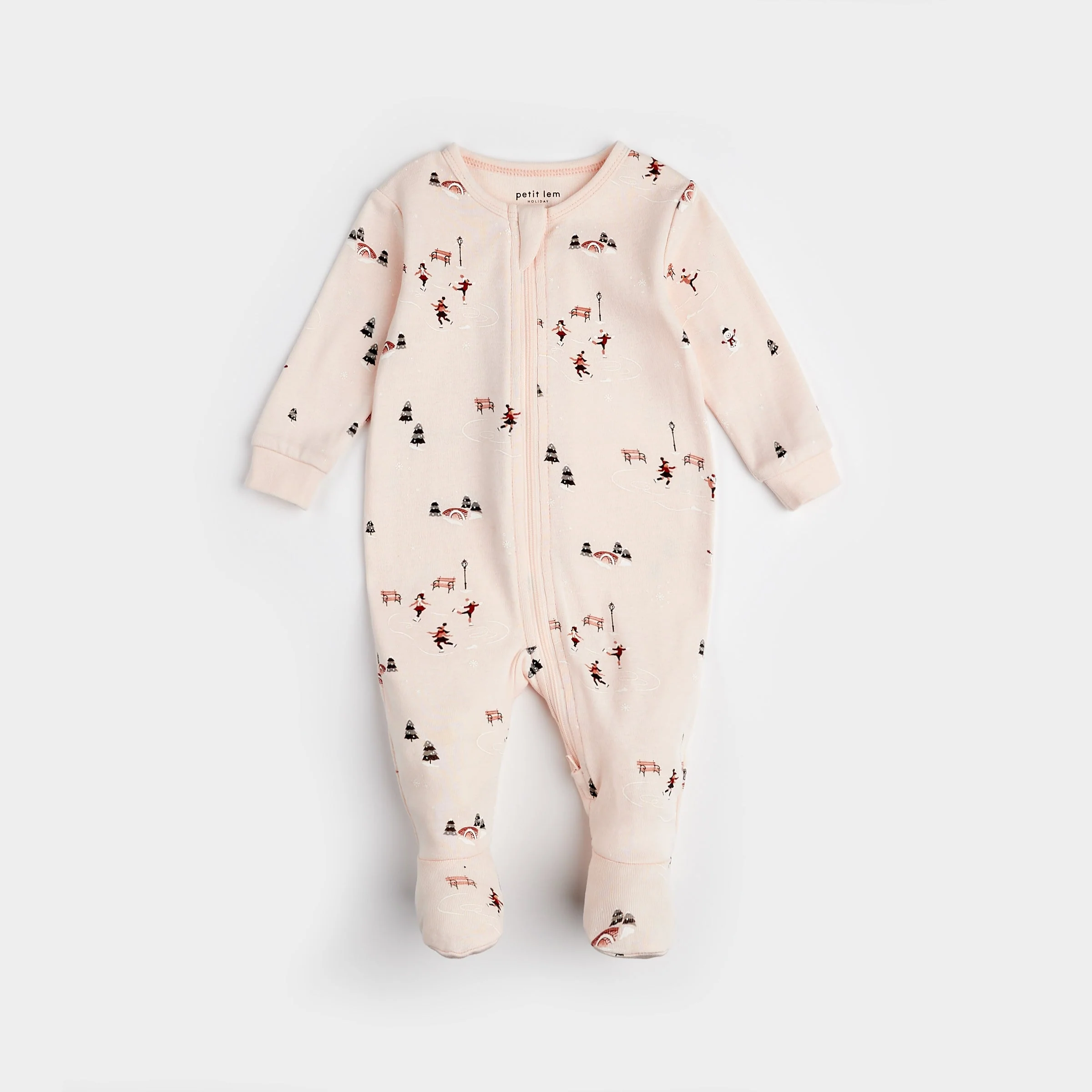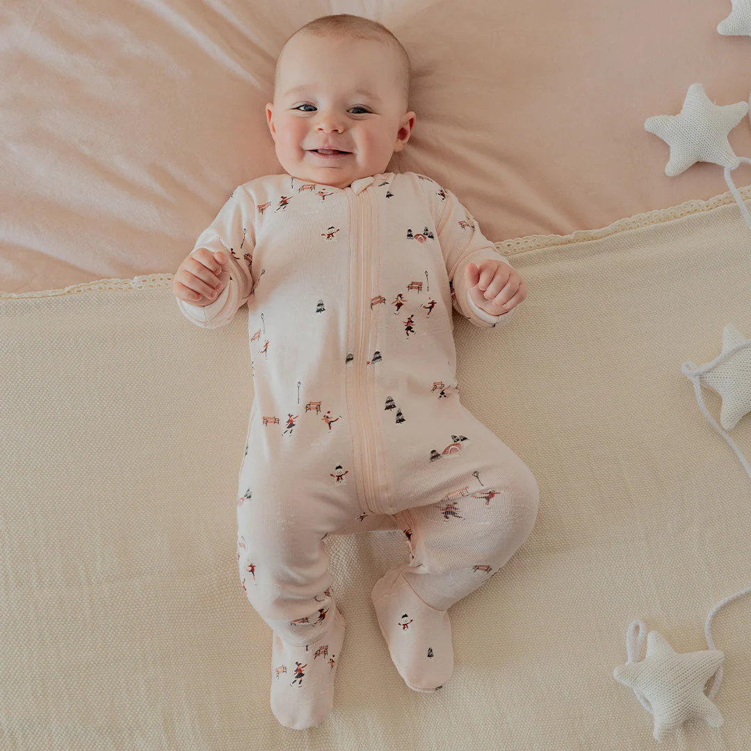 Cette jolie dormeuse rose pivoine arbore notre imprimé de patin sur étang et est assortie aux pyjamas disponibles dans la même gamme pour maman et les grandes sœurs. Grâce à ses pieds intégrés et ses poignets élastiqués, la grenouillère garde les orteils bien au chaud et offre une coupe ajustée qui les enveloppera dans un cocon douillet toute la nuit. La fermeture éclair double sens facilite le changement de couches sans qu'il soit nécessaire d'enlever la combinaison au complet.