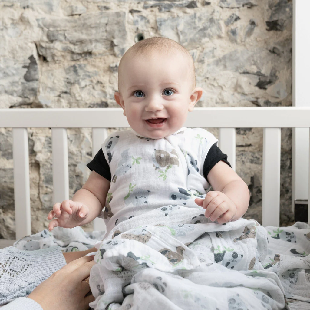 Cette dormeuse 0.7 TOG en mousseline 100% coton est fabriquée à partir d’un tissu respirant, doux et léger pour la peau de bébé. Elle deviendra votre meilleure alliée lors des températures plus chaudes ou températures modérées avec des vêtements de nuit appropriés.