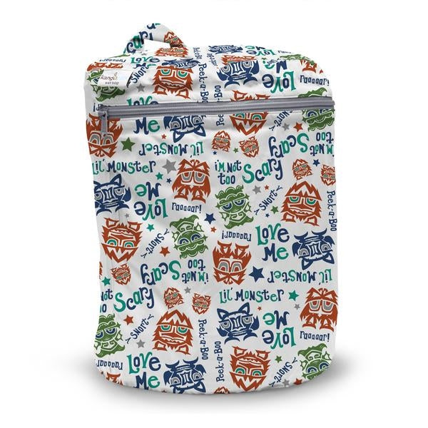 Kanga Care a conçu un sac imperméable pour disposer des couches souillées qui peut être accroché n'importe où. De plus, son design en forme de demi-lune permet d'y déposer jusqu'à 15 couches et inserts. Les coutures sont scellées pour éviter la moissisure et l'intérieur est imperméable pour éviter que les mauvaises odeurs se propagent. Le sac est biodégradable et lavable à la machine.