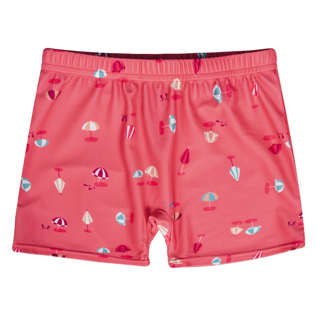 Joli short de plage avec protection solaire FPU50+ fabriqué dans un tissu à séchage rapide pour protéger les tout-petits du soleil tout l'été. À agencer avec son t-shirt de plage Perlim Pinpin coordonné!