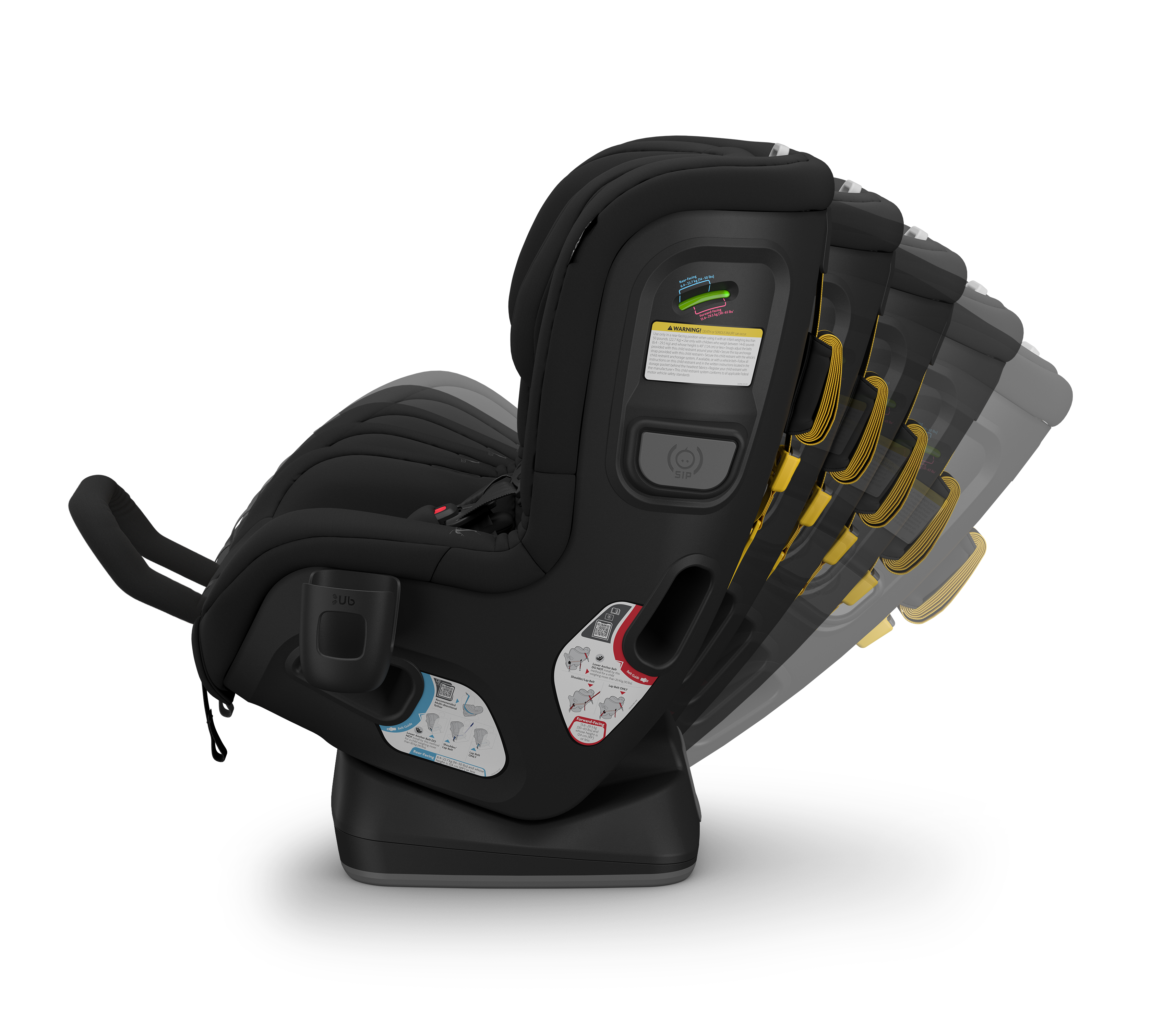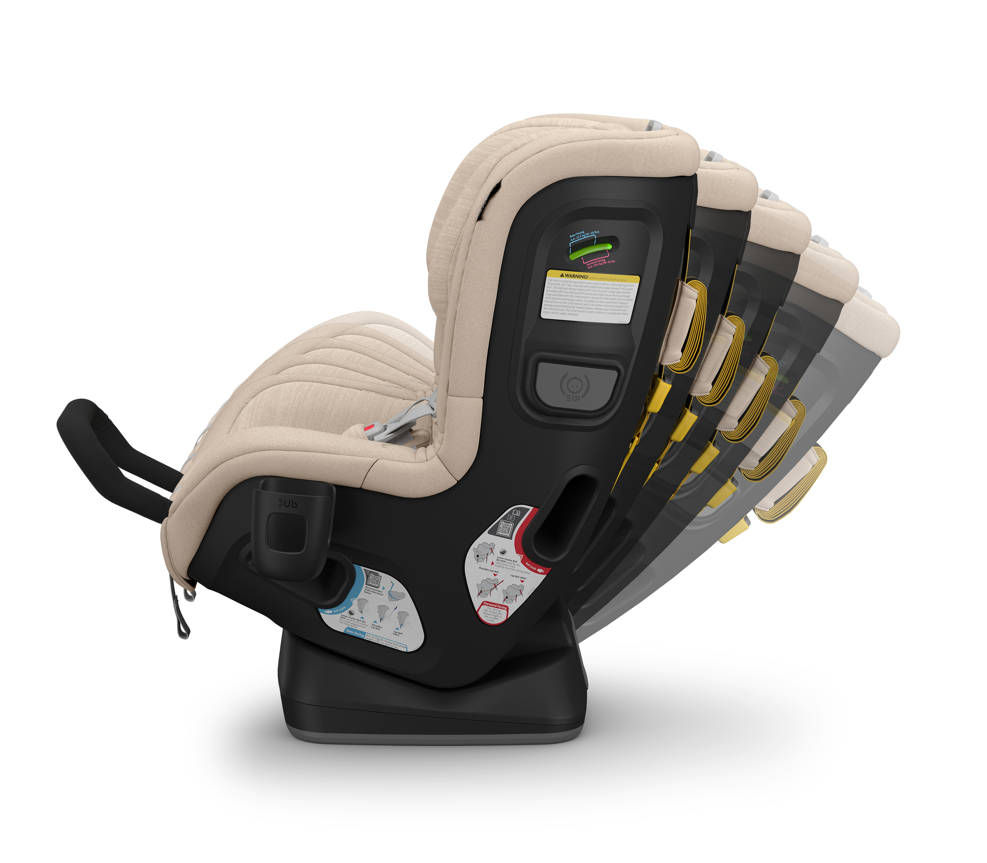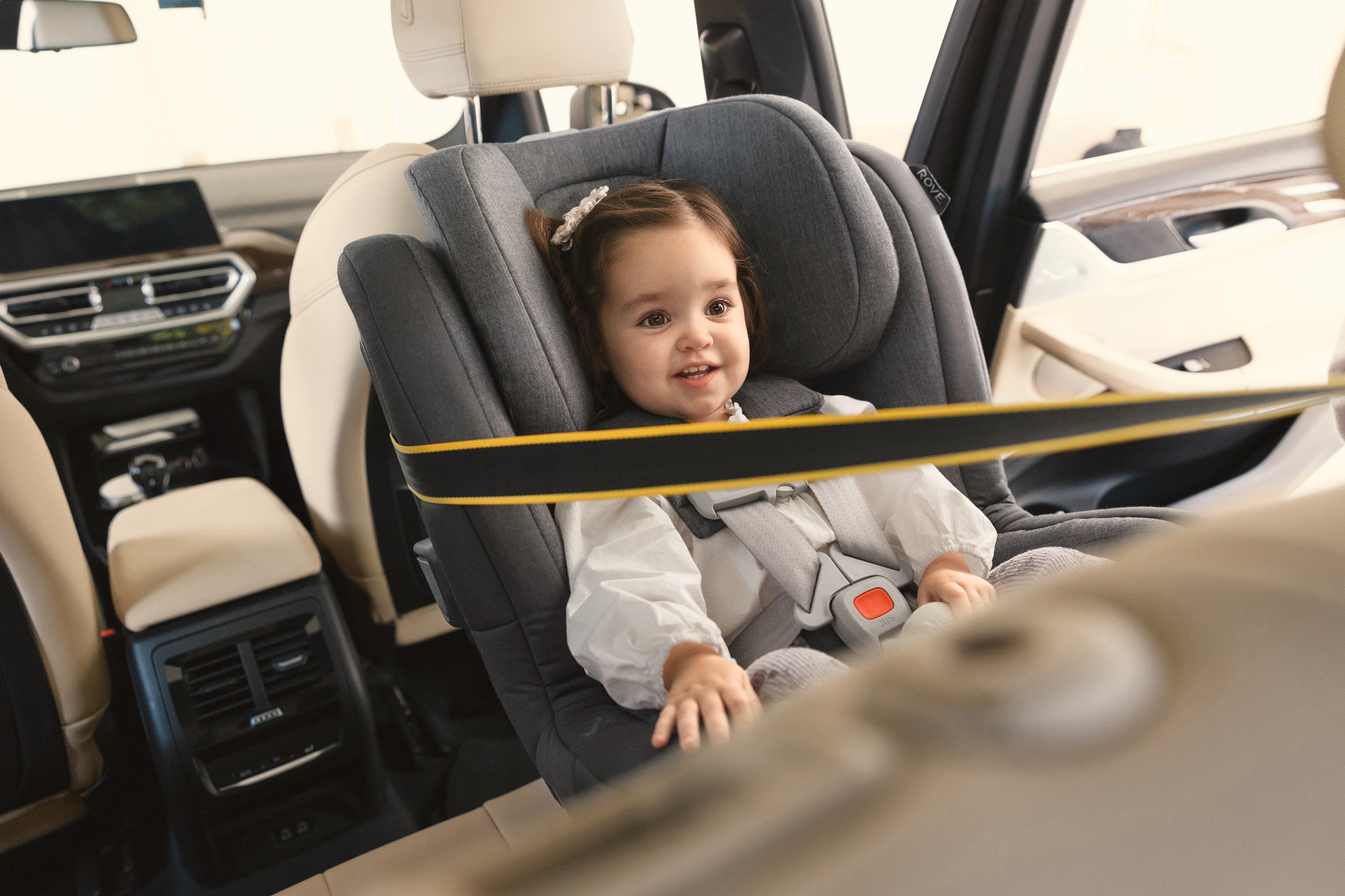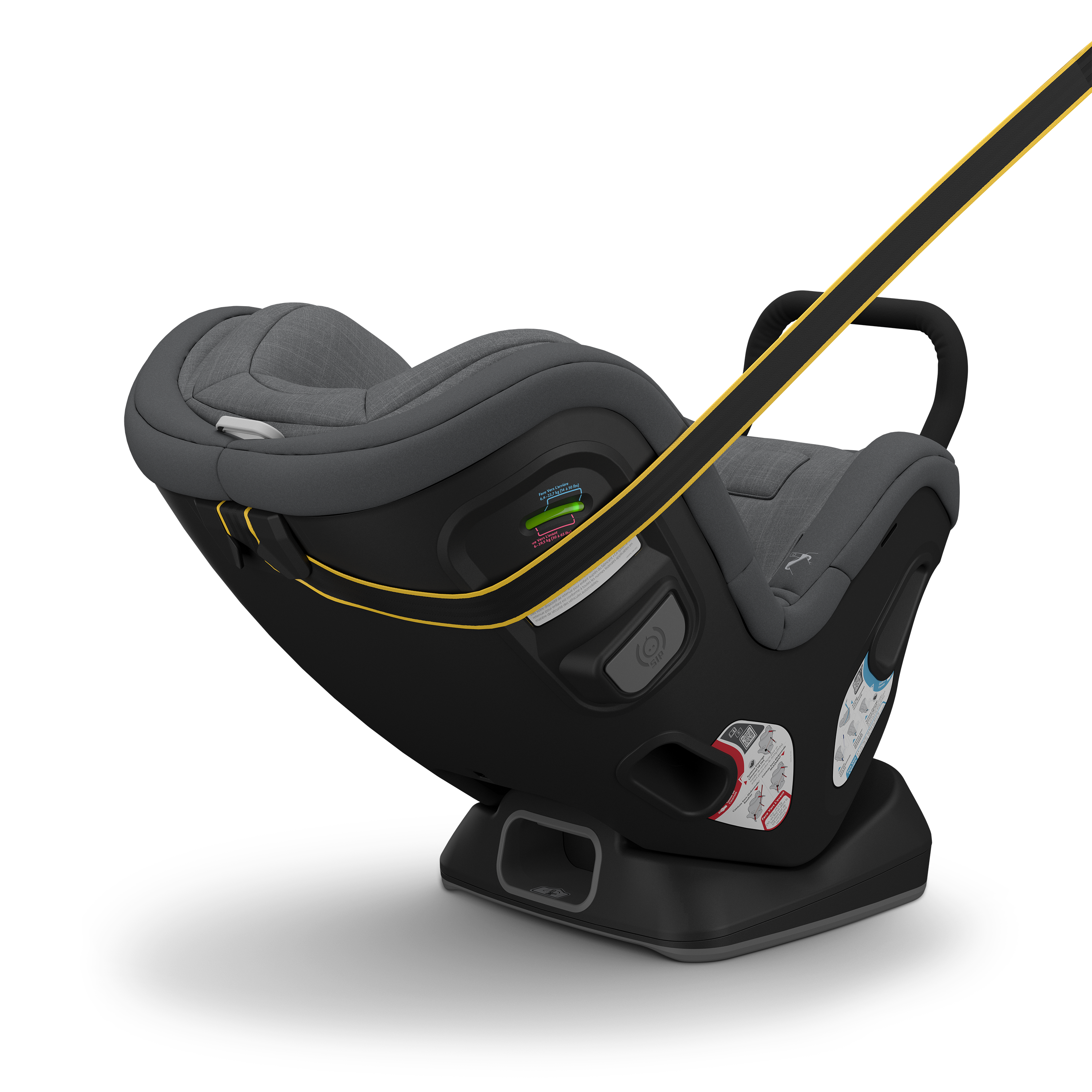 - Installation facile : système QuickGuard avec loquets à ressort à 3 étapes, SmartSecure avec indicateur de tension visuel (rouge à vert), passage de ceinture ouvert pour une installation plus rapide, indicateurs de niveau à bulle de chaque côté.