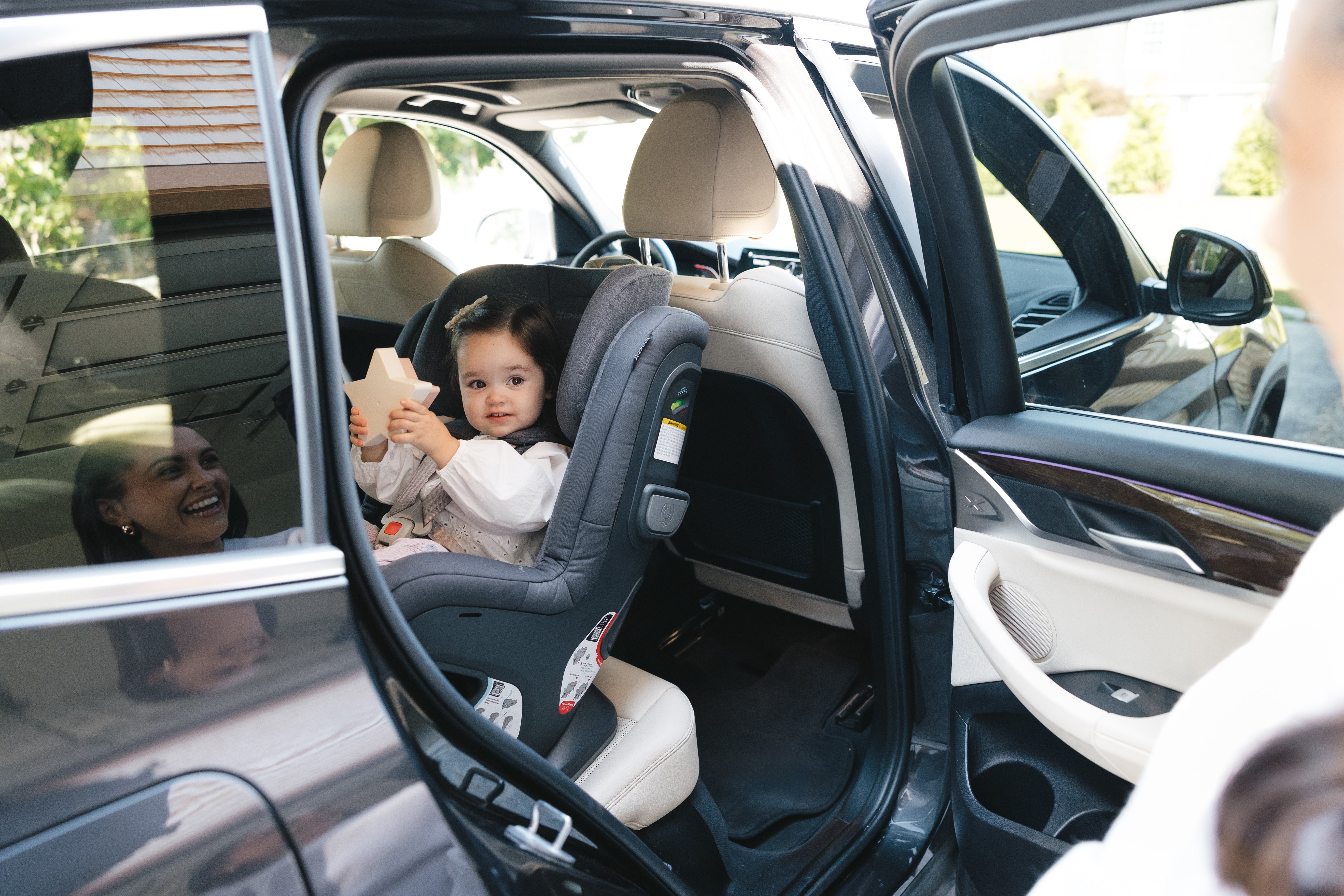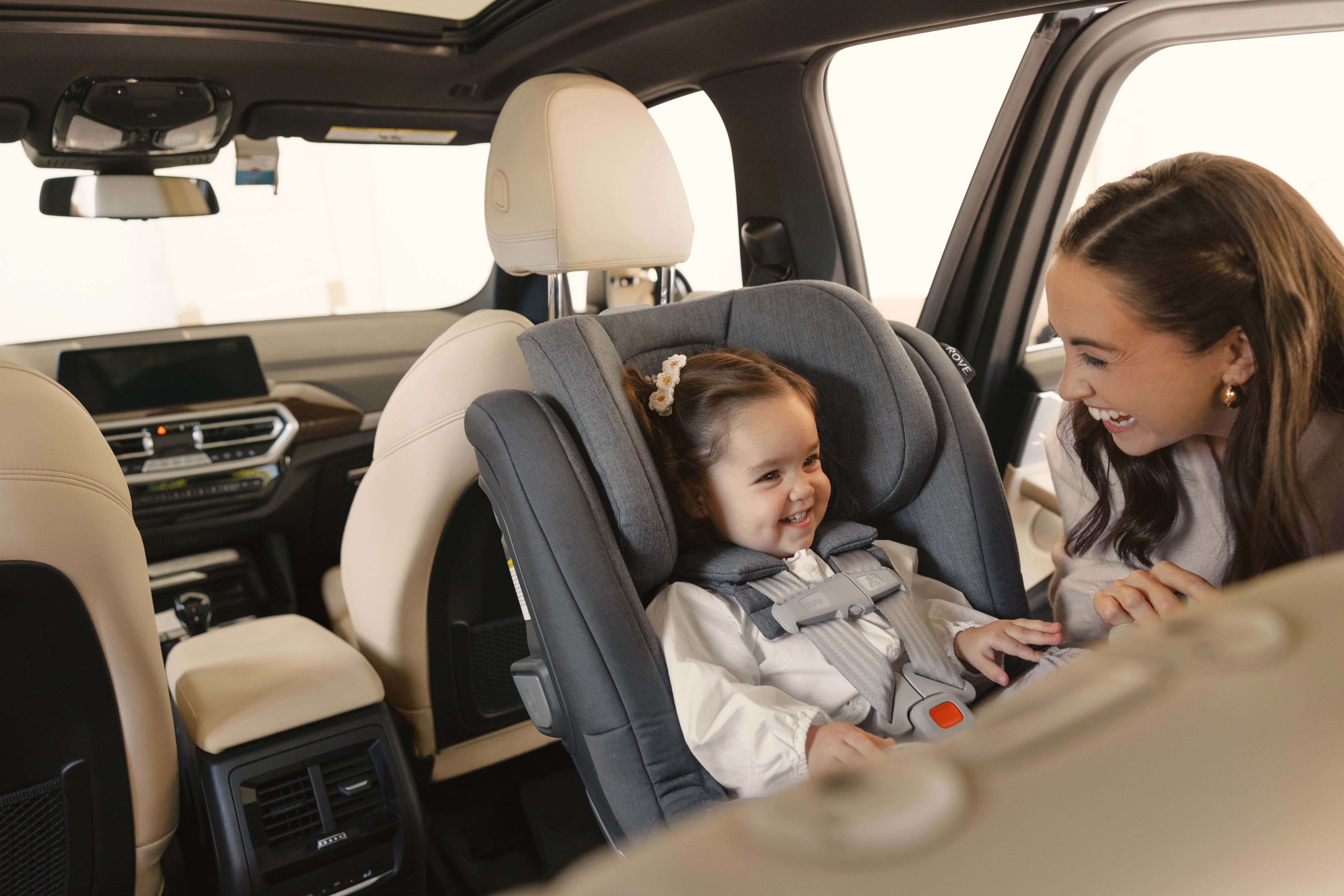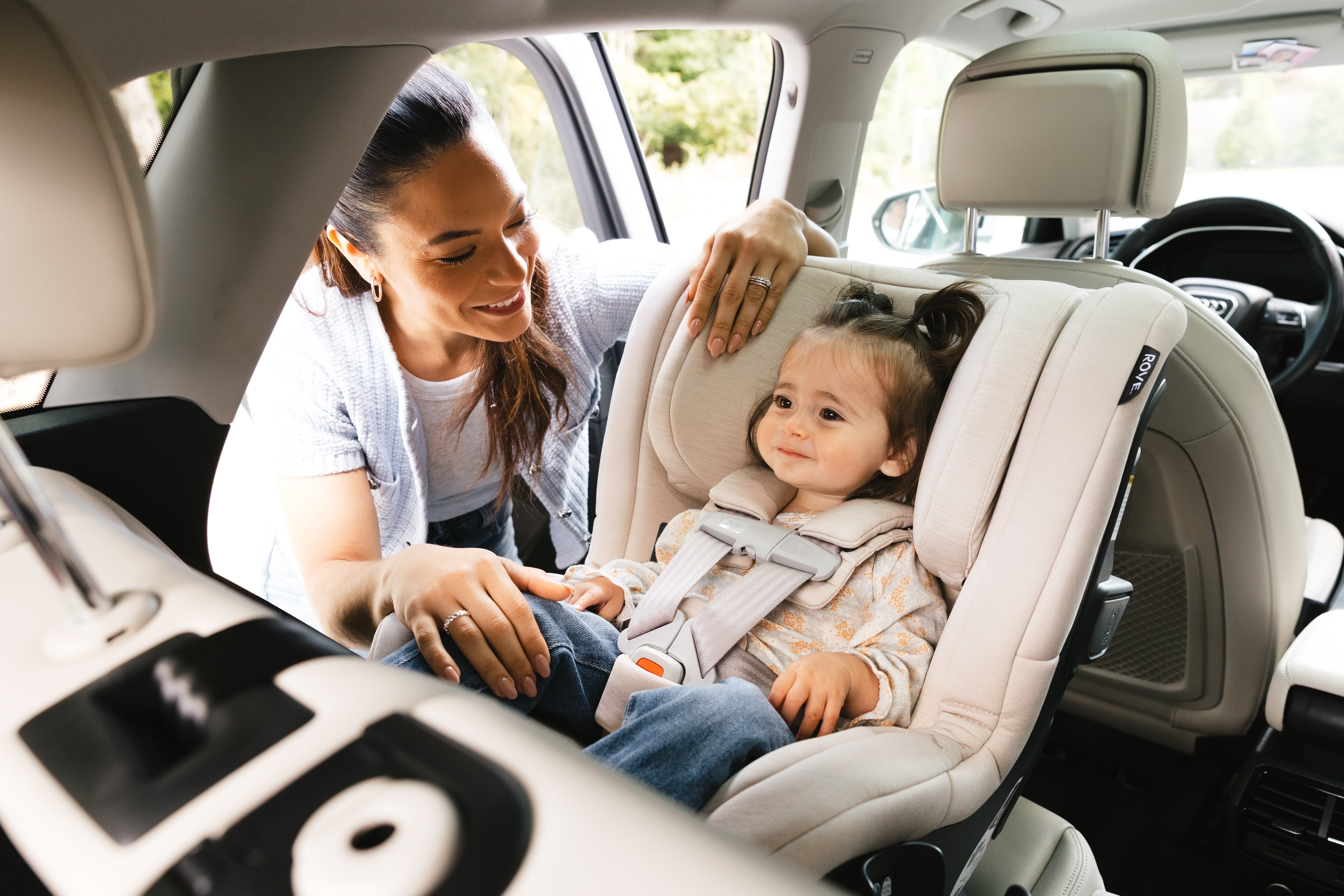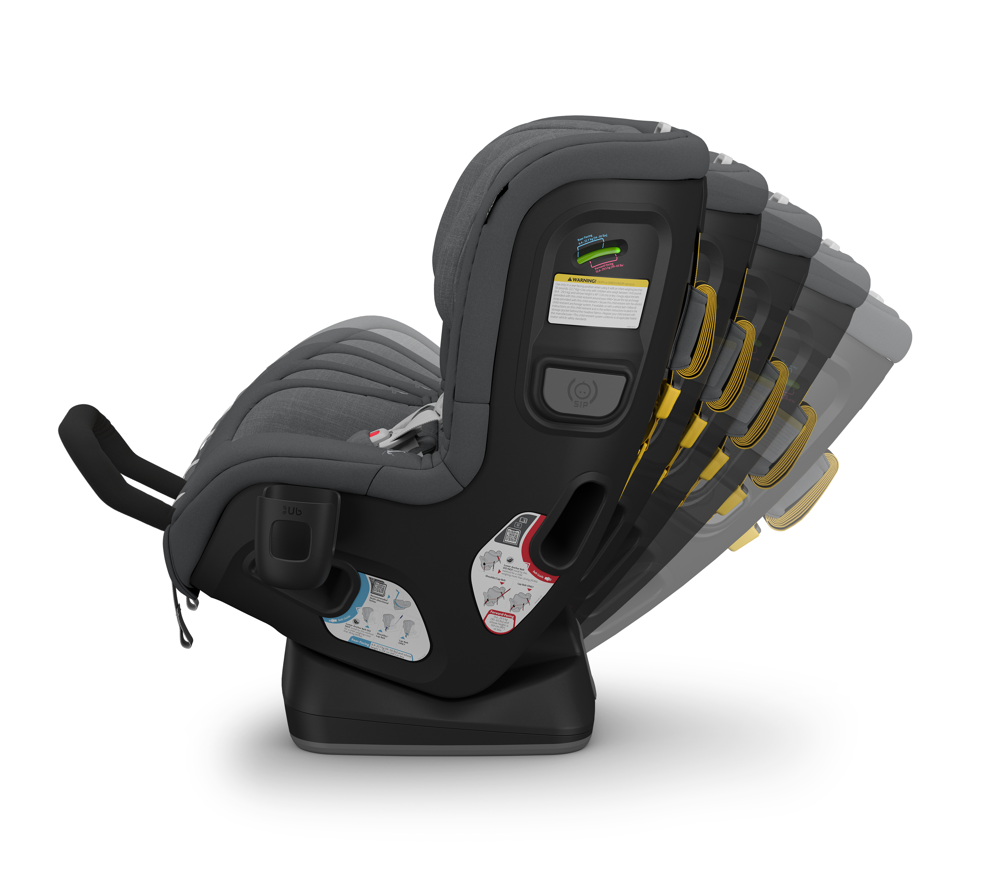 - Installation facile : système QuickGuard avec loquets à ressort à 3 étapes, SmartSecure avec indicateur de tension visuel (rouge à vert), passage de ceinture ouvert pour une installation plus rapide, indicateurs de niveau à bulle de chaque côté.