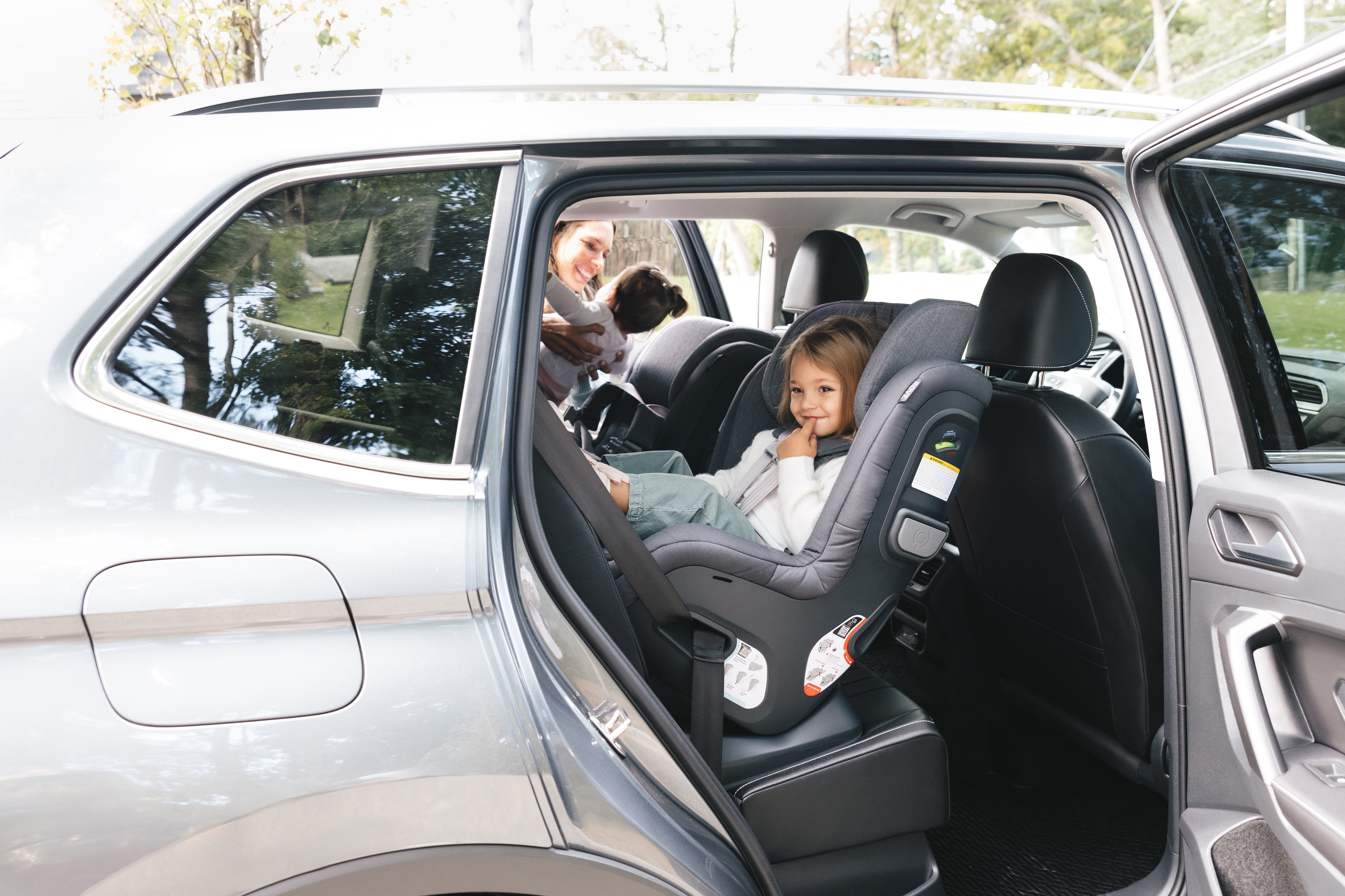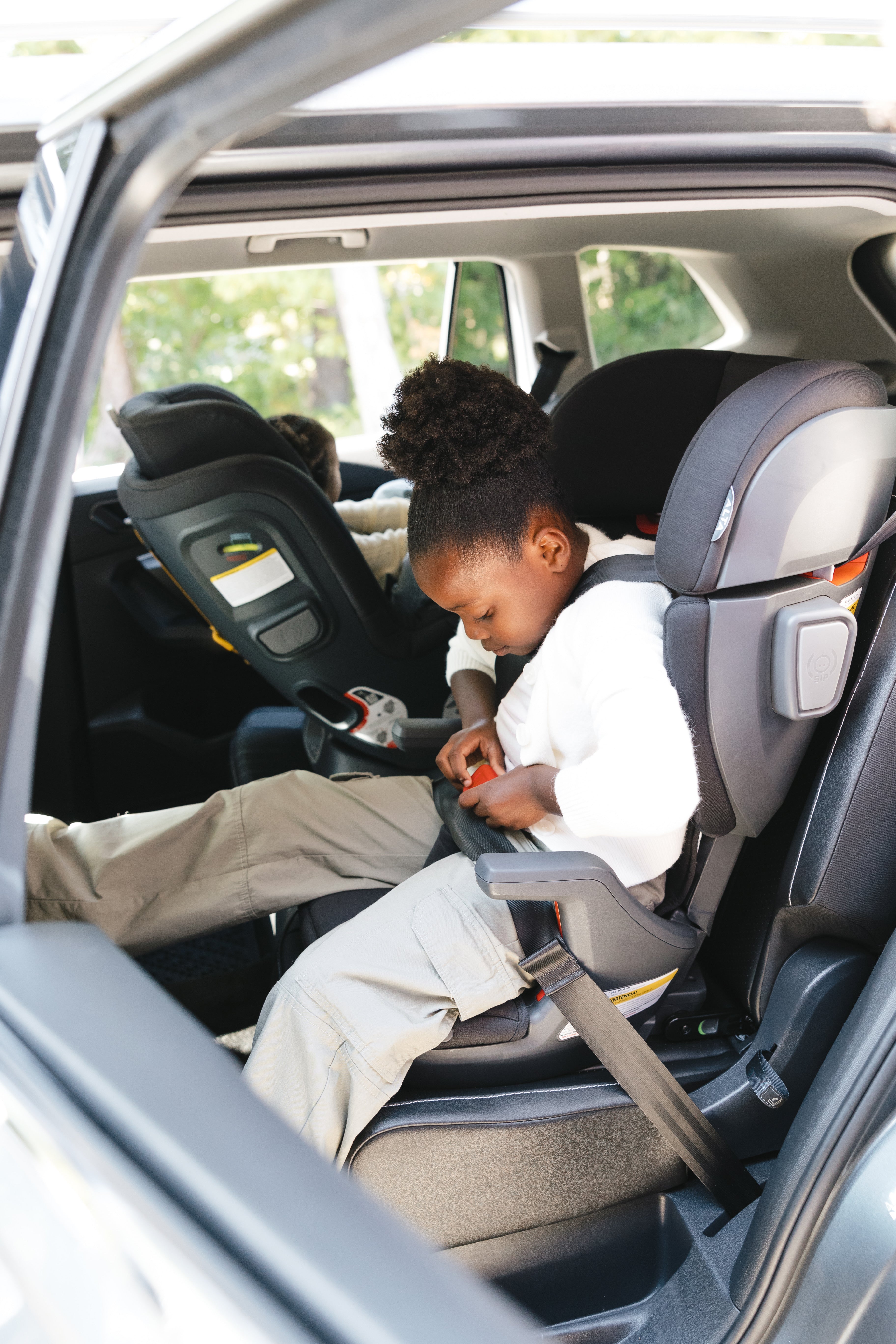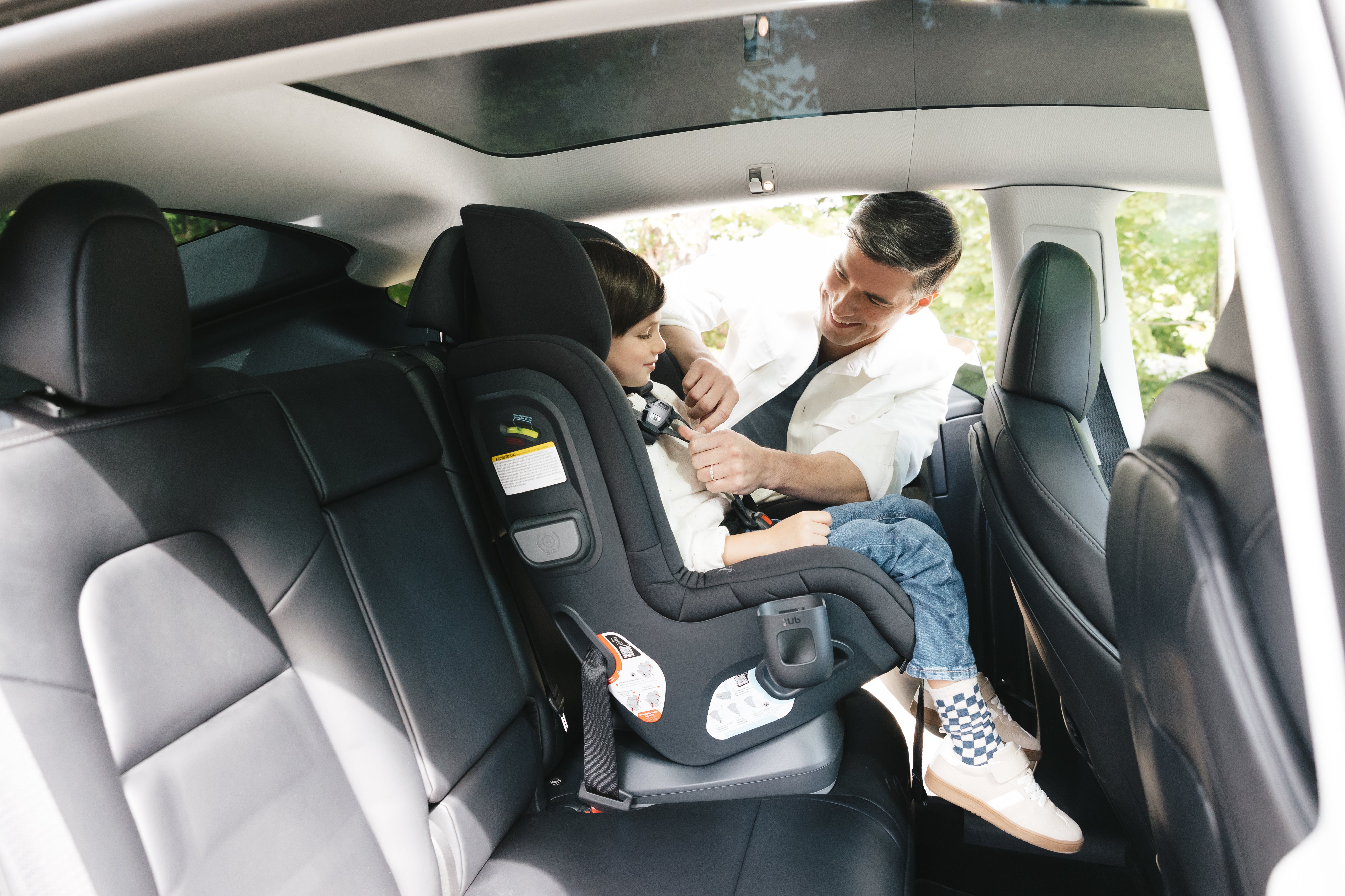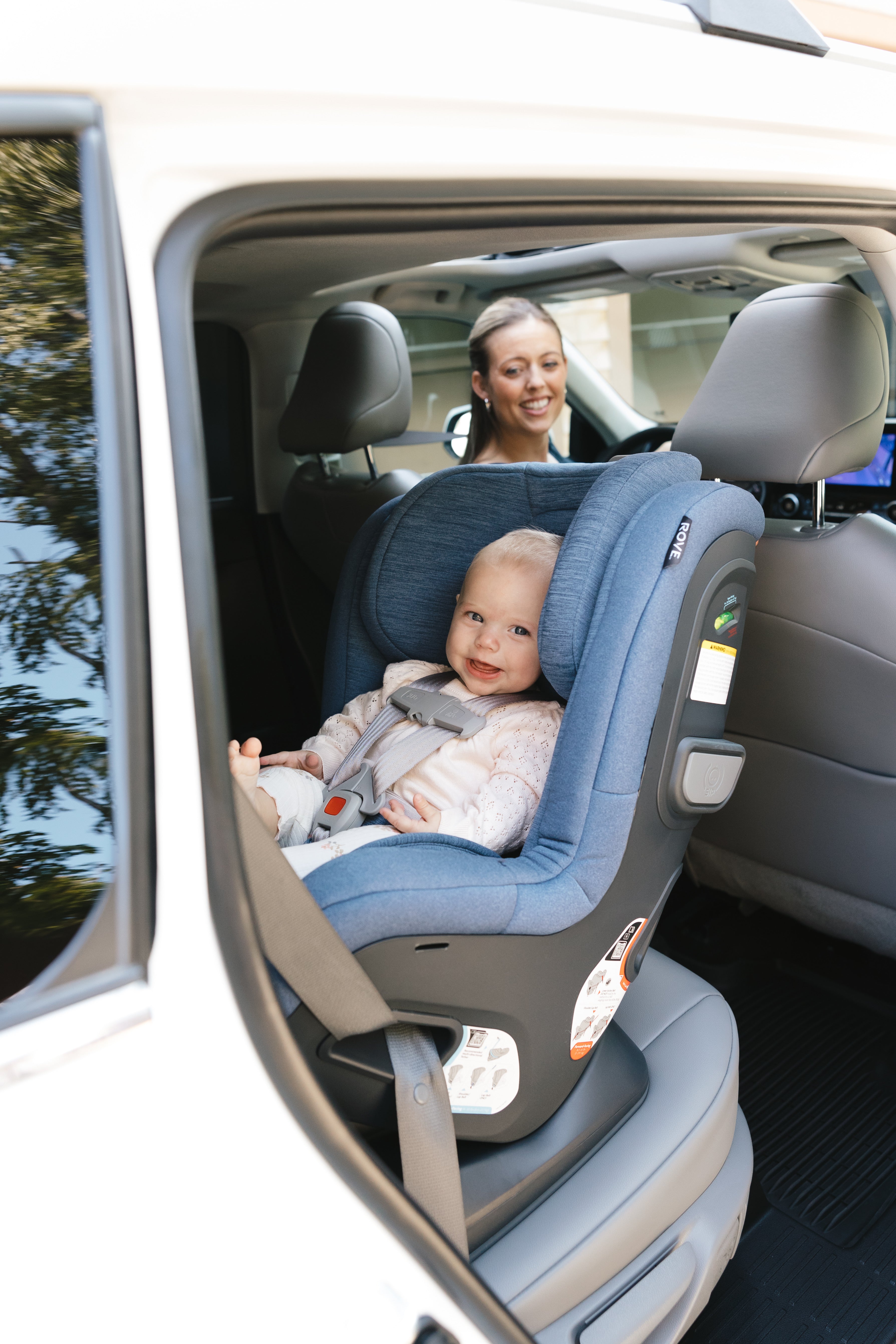 - Installation facile : système QuickGuard avec loquets à ressort à 3 étapes, SmartSecure avec indicateur de tension visuel (rouge à vert), passage de ceinture ouvert pour une installation plus rapide, indicateurs de niveau à bulle de chaque côté.