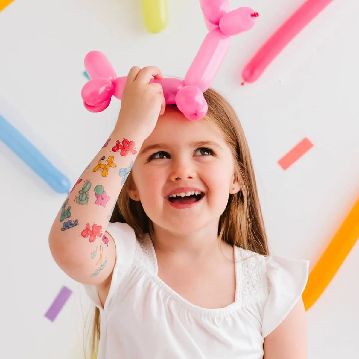 C'est la fête ! Les animaux en ballons sont prêts pour un party haute en couleur. Les confettis se mettent de la partie.