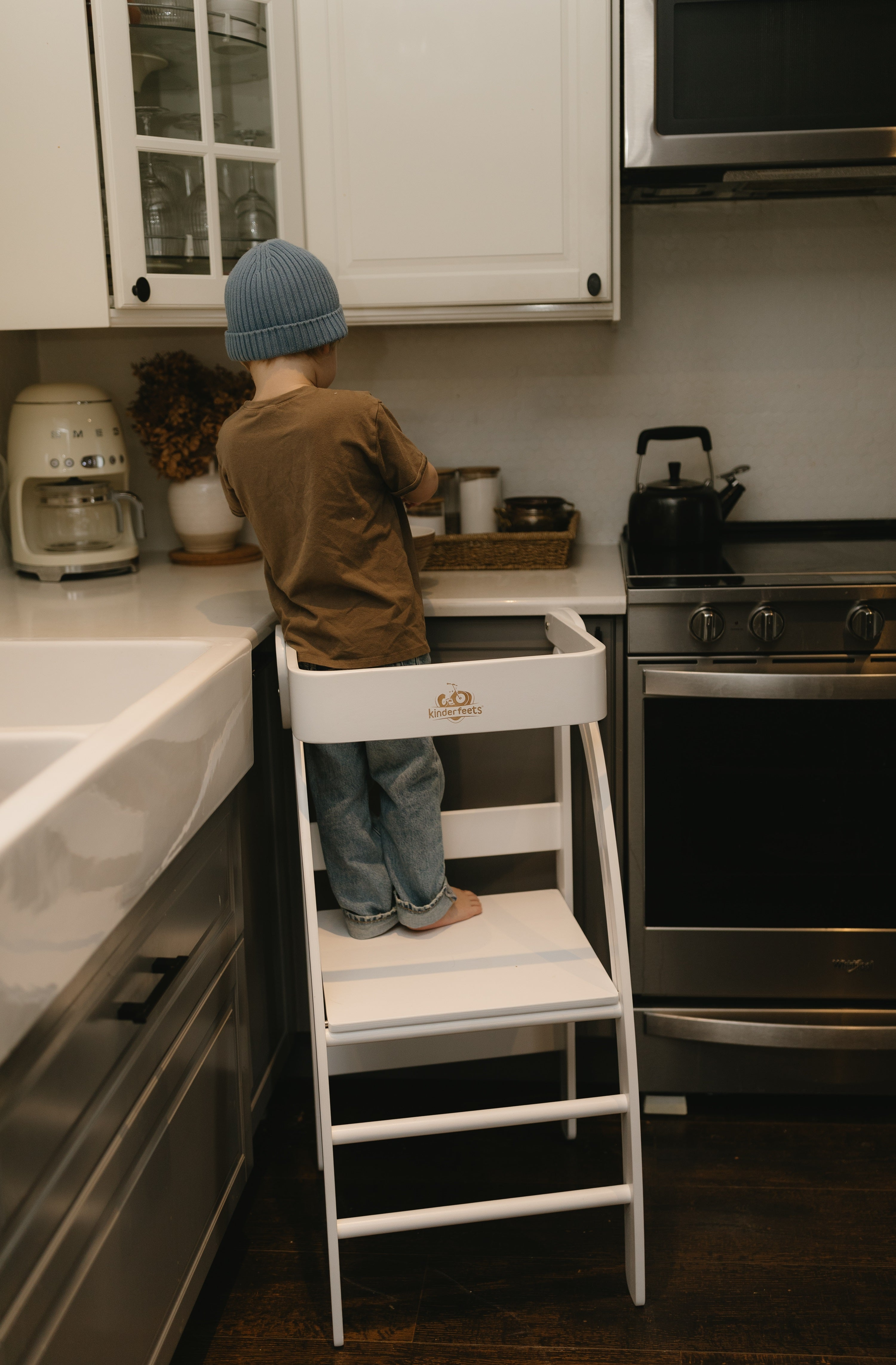Votre enfant est impatient de participer à la cuisine, mais il ne peut pas atteindre le comptoir ? Ou bien son imagination l'emmène-t-elle dans un pays lointain où il est nécessaire d'avoir une vue à 360° pour assurer la sécurité ? La tour d'observation Kinderfeets est un article Pikler polyvalent conçu pour des jeux imaginatifs, éducatifs et fonctionnels de toutes sortes !
