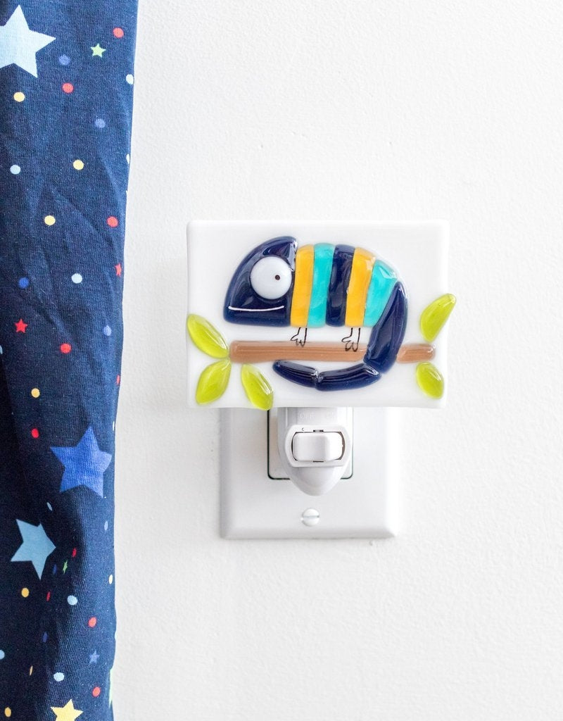 Veilleuse en verre fusionné - Steeve - Caméléon bleu