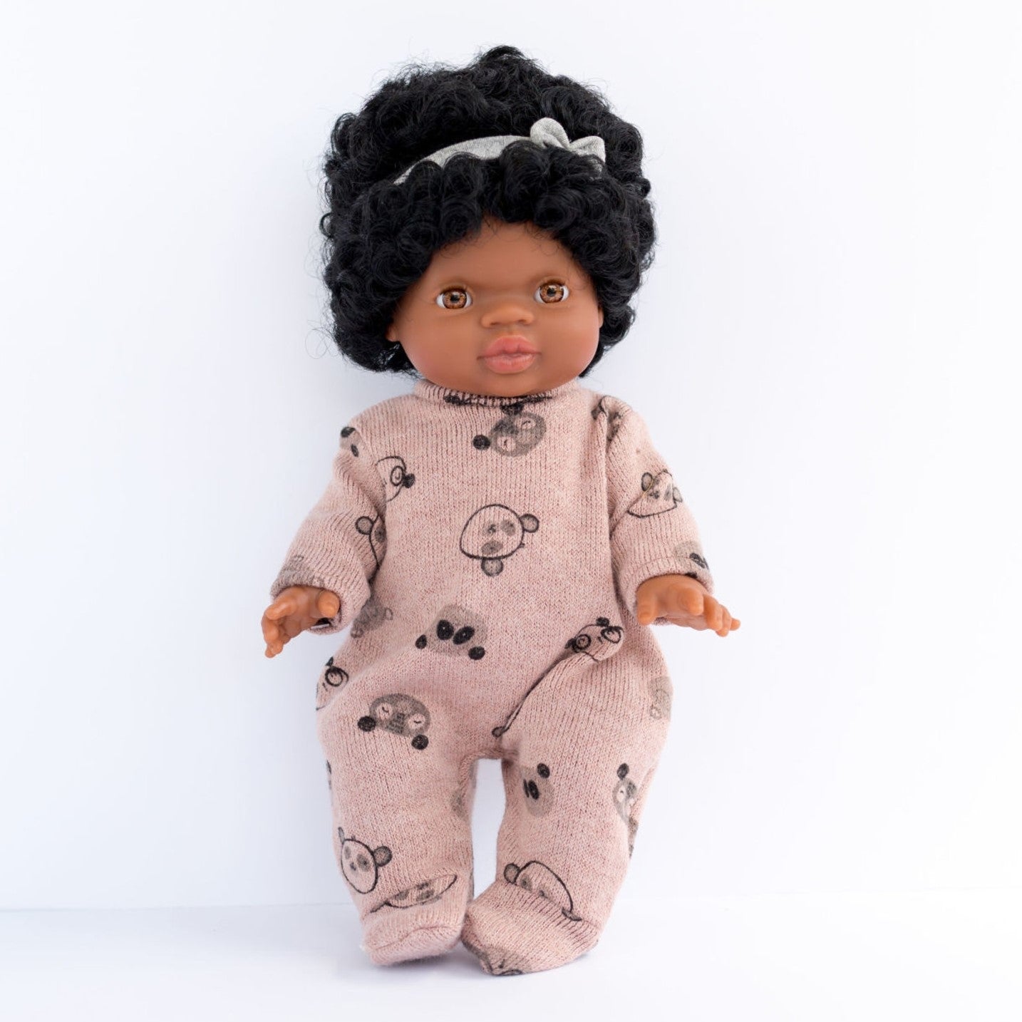 Vêtements pour poupée - Pyjama et bandeau ourson rose